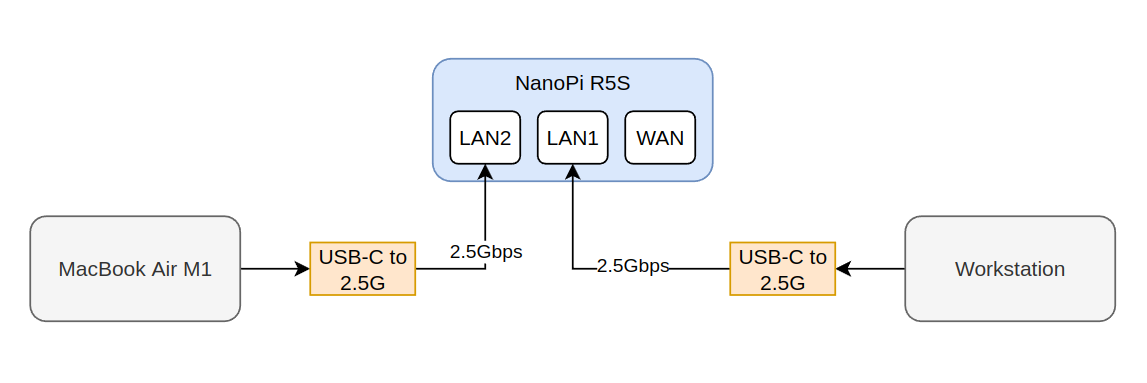 Reverse mode means that the Mac M1 with the USB-C dongle will send data to the NanoPi R5S.