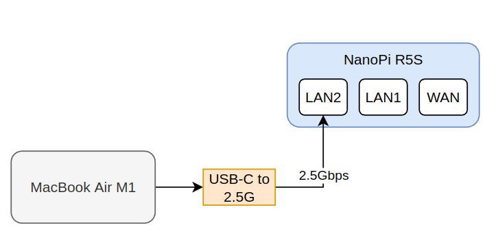 Reverse mode means that the Mac M1 with the USB-C dongle will send data to the NanoPi R5S.