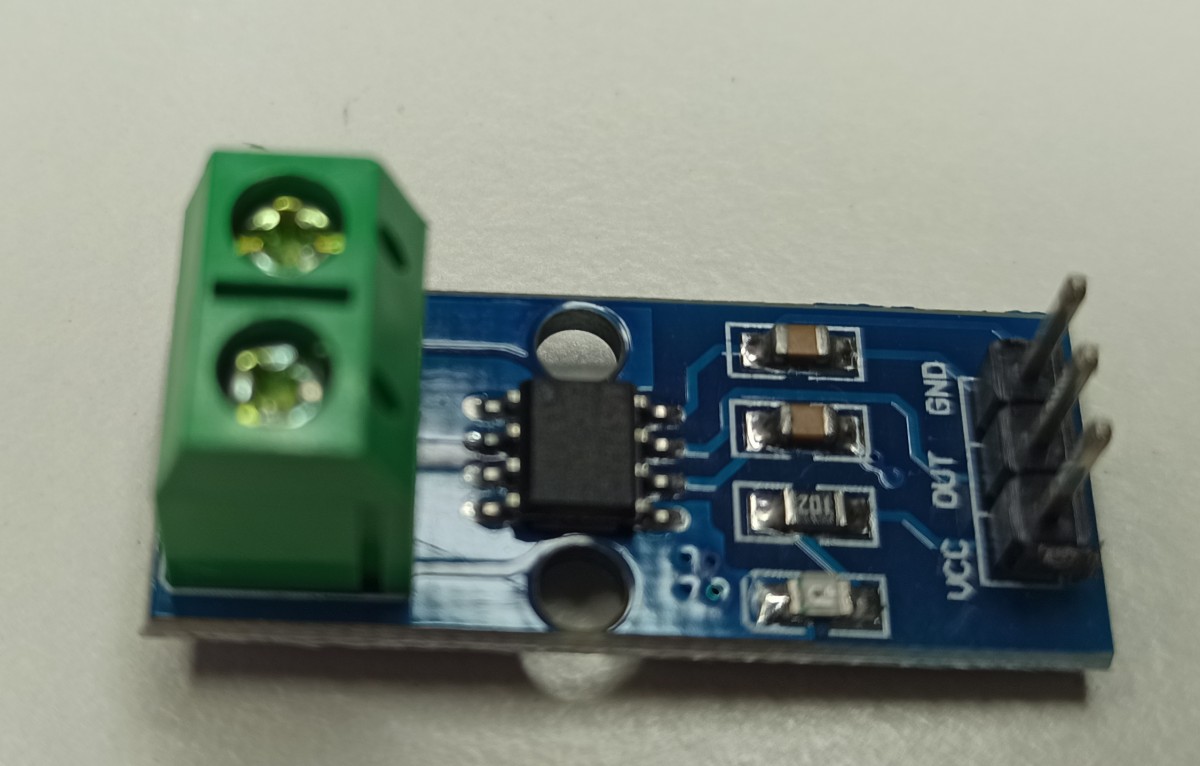 Then I’ve removed the green block connector and the pin-header from the ACS712 PCB so it takes as much less space as possible and then I’ve soldered the GND and the 5V.