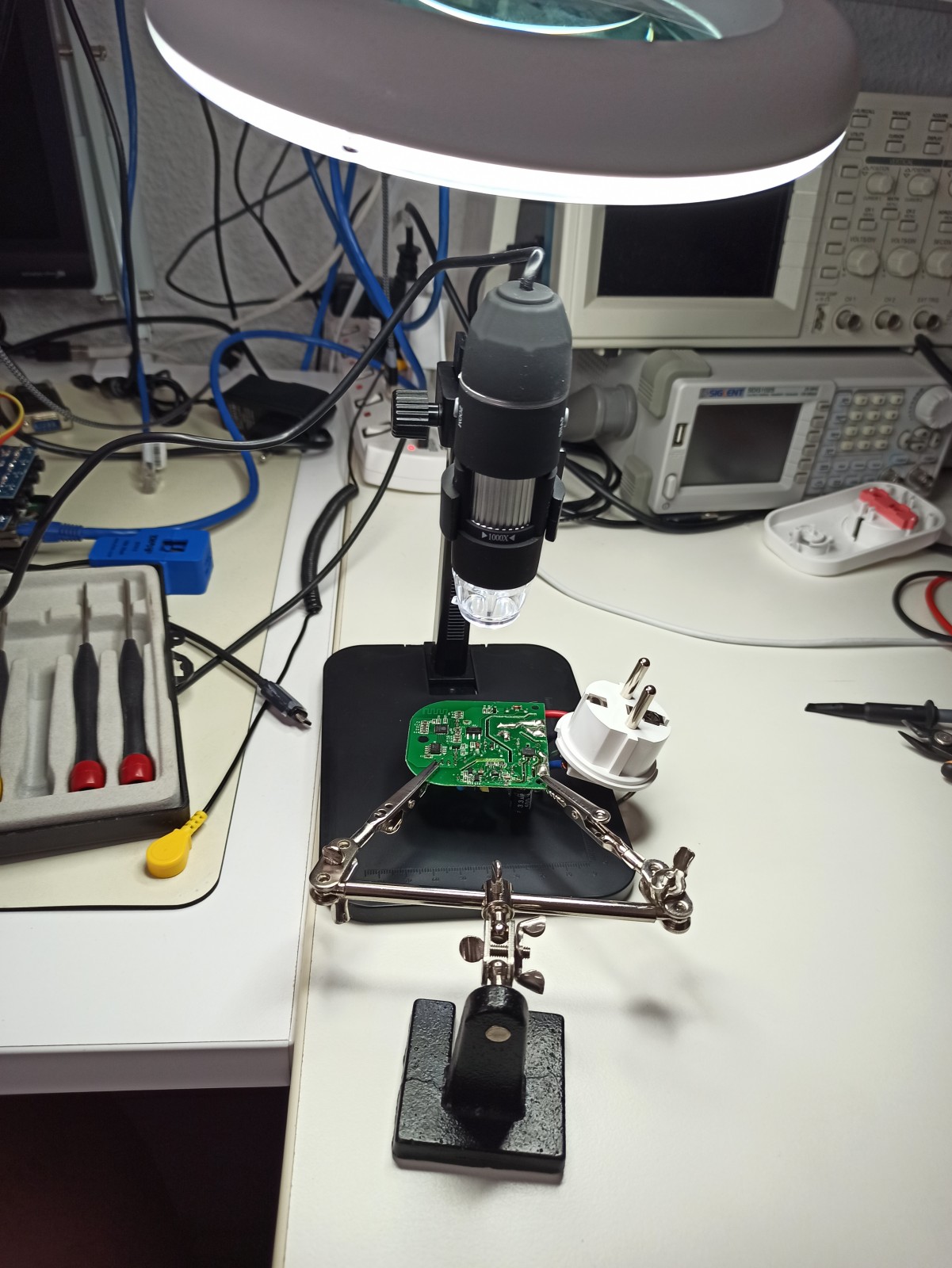 I’ve used a USB microscope to check the board and also make some pictures, but those cheap microscopes are so crap that in the end I’ve just used the magnify lamp to do the soldering…
