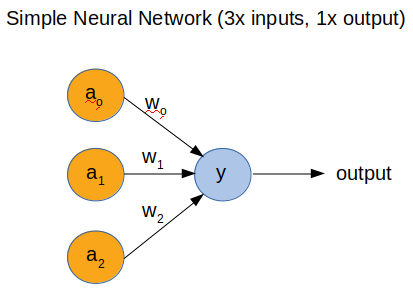 In the above image we see the topology of a simple NN. That has 3x inputs and 1x output. I won’t get into the details of the math. In this case the output is simple to calculate and it’s:
