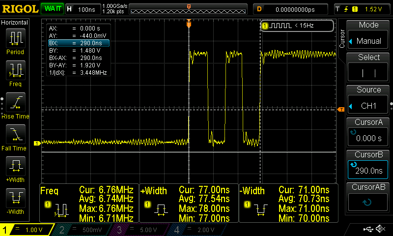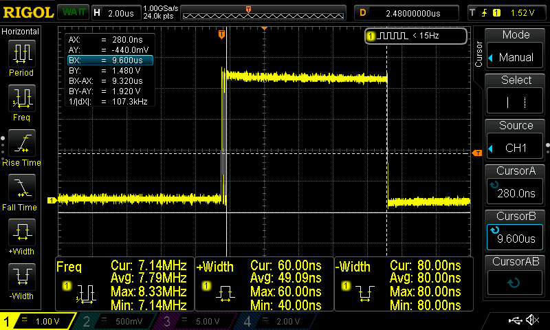 Note: I’ve included all the oscilloscope screenshots in the screenshots folder in the repo. Therefore, you can have a look on the oscilloscope output for each different MCU as I’m not going to post them all here (there are just too many).