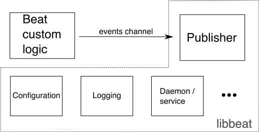 Beats are just simple client programs written in Go that they’re using the libeat Go API and perform very specific tasks. You can use this API to write your own beat clients in Go that can do whatever you like. The API just provides the interface and implements the network communication including authentication. At the higher level a Beat is split into two components, the component that collects the data and implements the business logic (e.g. reading a temperature/humidity sensor) and the publisher component that handles all the communication with the server including authorization, timeouts e.t.c. The diagram below is simple to understand.
