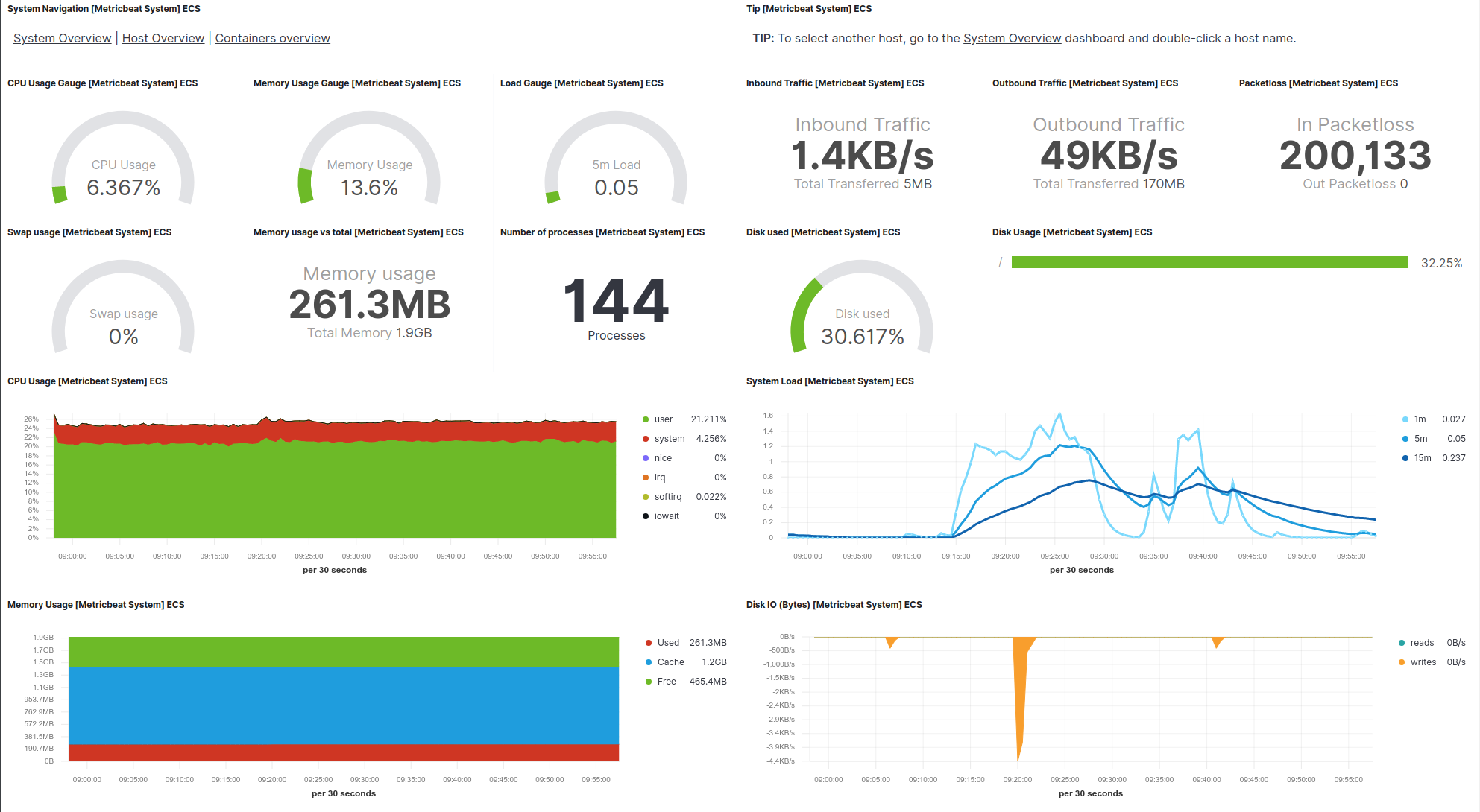 At this point, we have a running instance of an Elasticsearch server, a Kibana server and a ready-to-go SBC with the metricbeat client. Next thing to do now is to run the metricbeat client and start collecting data in the server. As I’ve mentioned earlier the deb file also installs a service file, so you can either run the executable in your terminal or even better enable and start the service.