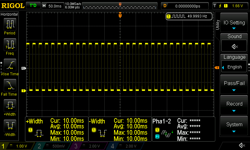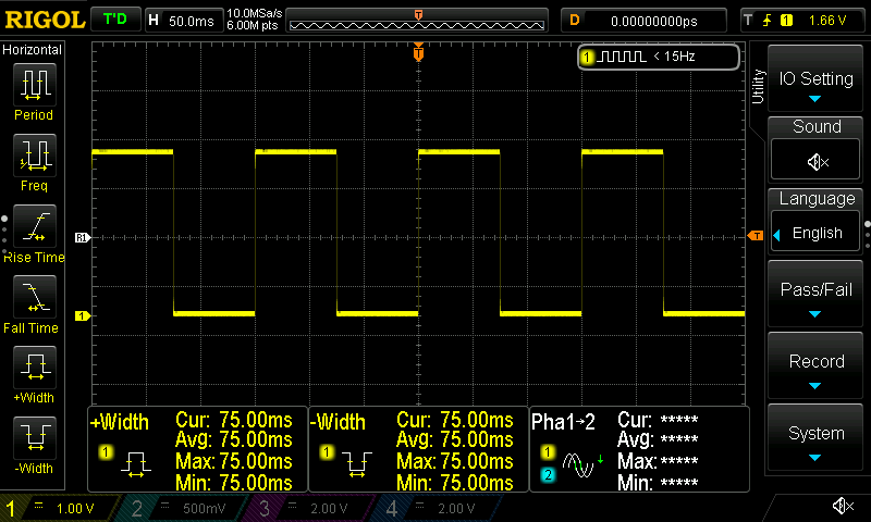 Then connect the oscilloscope probe on the pin 23, connect the USB cable from your host to Teensy while holding the reset button on the board and then release the button. If all goes properly, you should see this output: